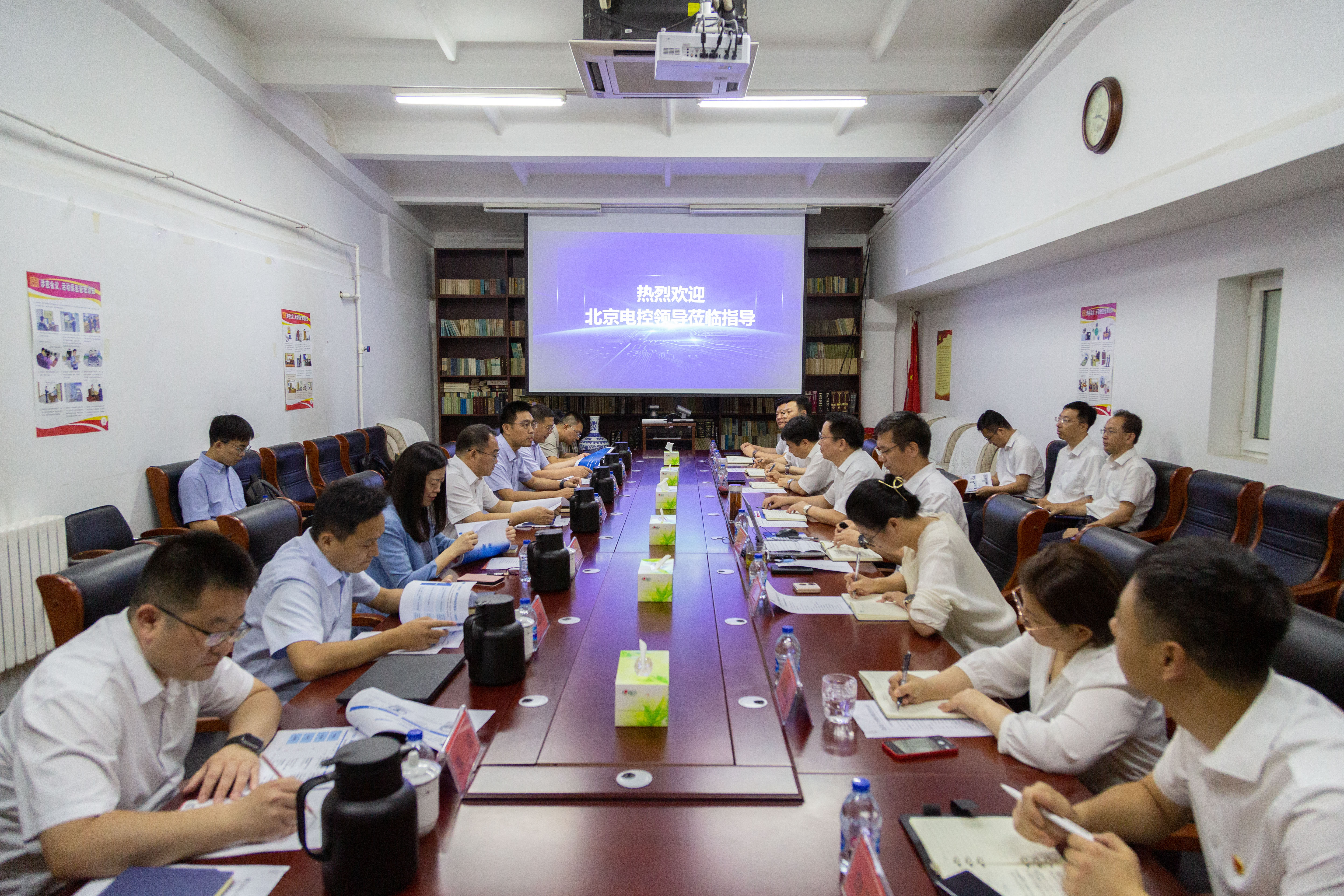 大華公司黨委書記、董事長董永生代表公司歡迎北京電控領(lǐng)導一行蒞臨指導。黨委副書記、總經(jīng)理楊勇詳細匯報了大華公司“十四五”規(guī)劃評估和落實情況,并對“十五五”規(guī)劃進行展望,同時匯報了對七九七音響托管工作的進展。